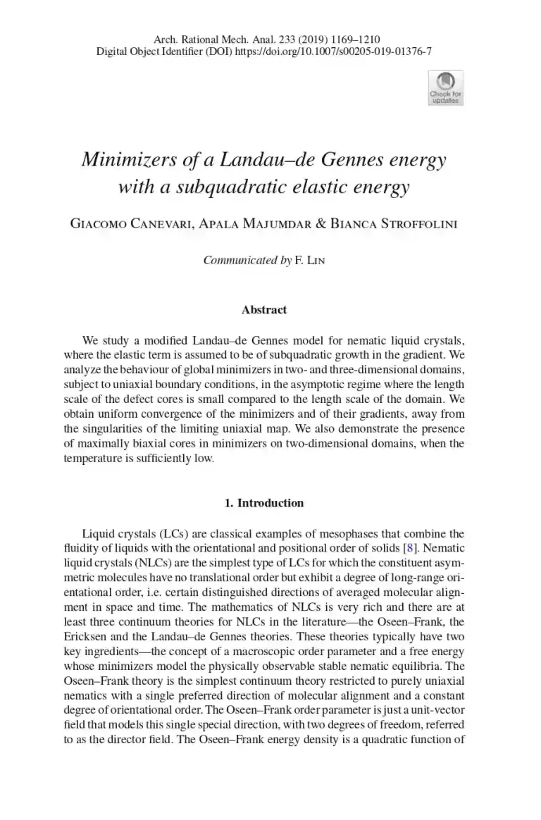 Minimizers of A Landau–de Gennes Energy with A Subquadratic Elastic Energy 38 20 View details Download