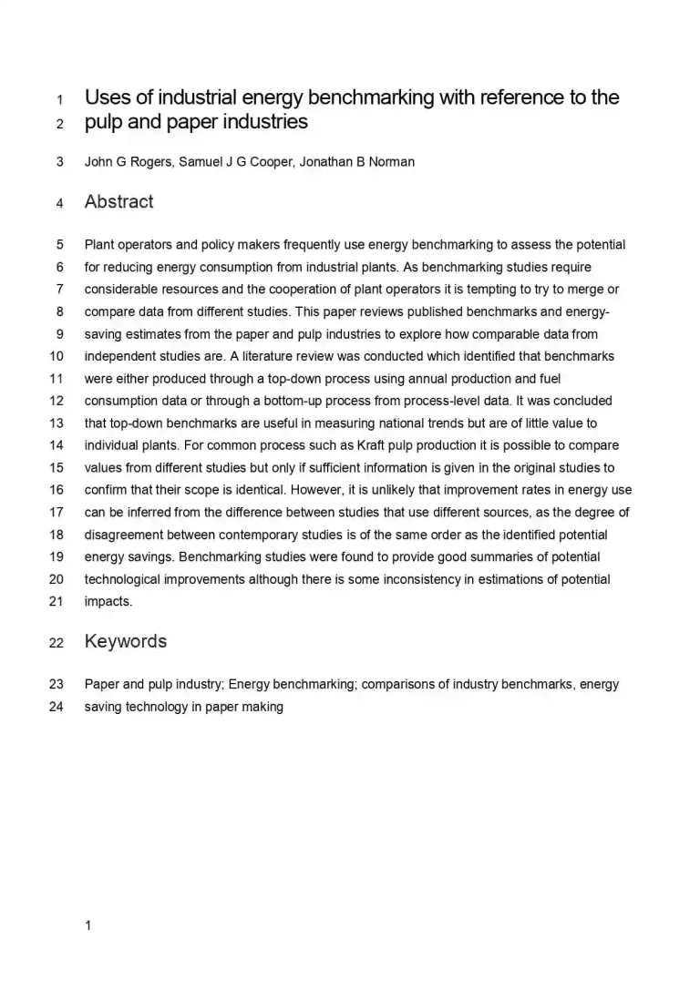 Uses of Industrial Energy Benchmarking with Reference to the Pulp and Paper Industries 35 79 View details Download