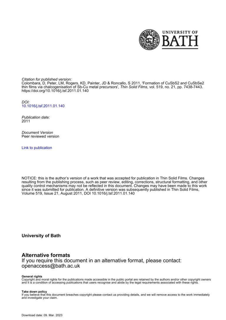 Formation of CuSbS2 and CuSbSe2 Thin Films via Chalcogenization of SbCu Metal Precursors 41 17 View details Download