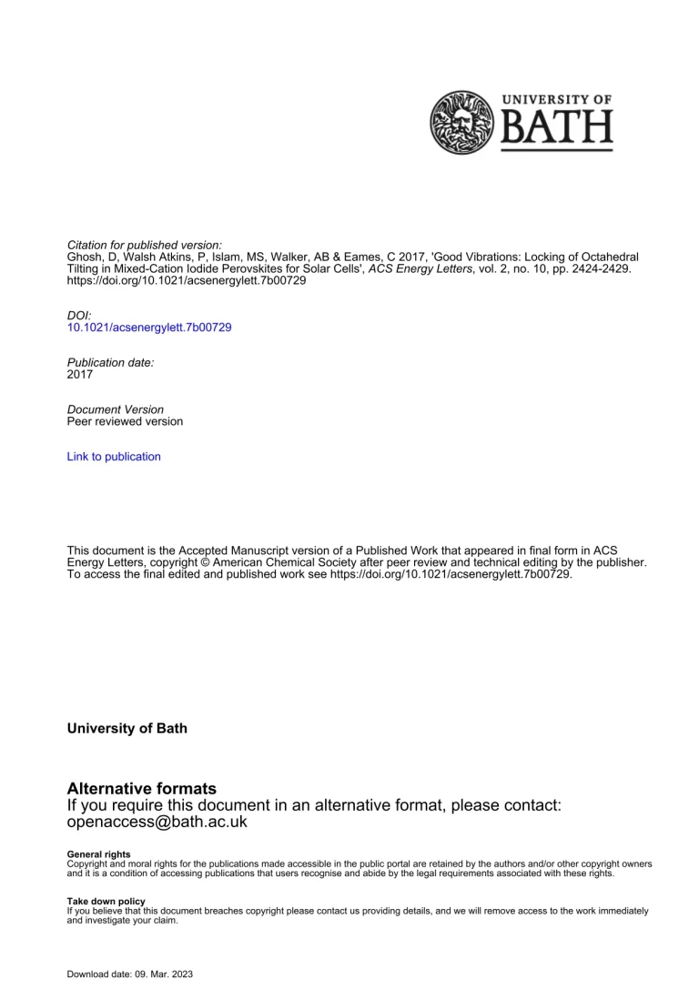 Good Vibrations – Locking of Octahedral Tilting in Mixed-Cation Iodide Perovskites for Solar Cells 35 26 View details Download