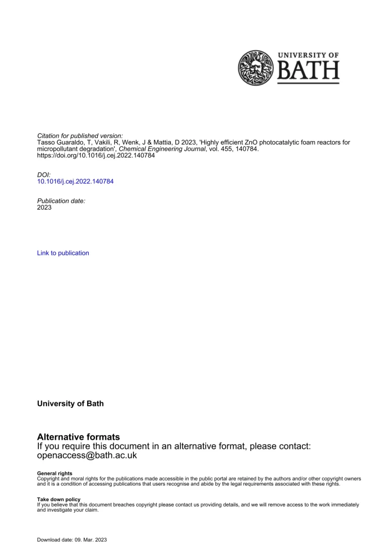 Highly Efficient ZnO Photocatalytic Foam Reactors For Micropollutant Degradation 35 47 View details Download