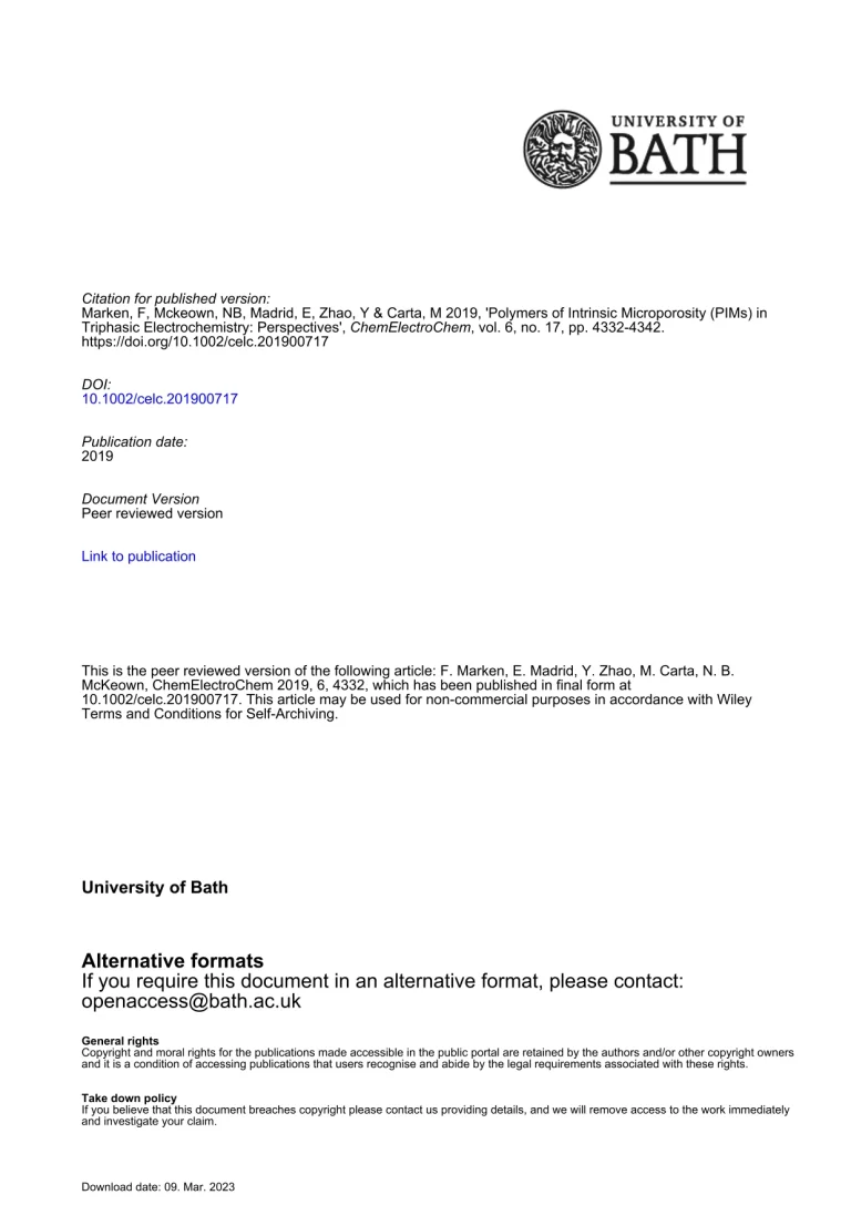 Polymers of Intrinsic Microporosity (PIMs) in Triphasic Electrochemistry – Perspectives 30 31 View details Download
