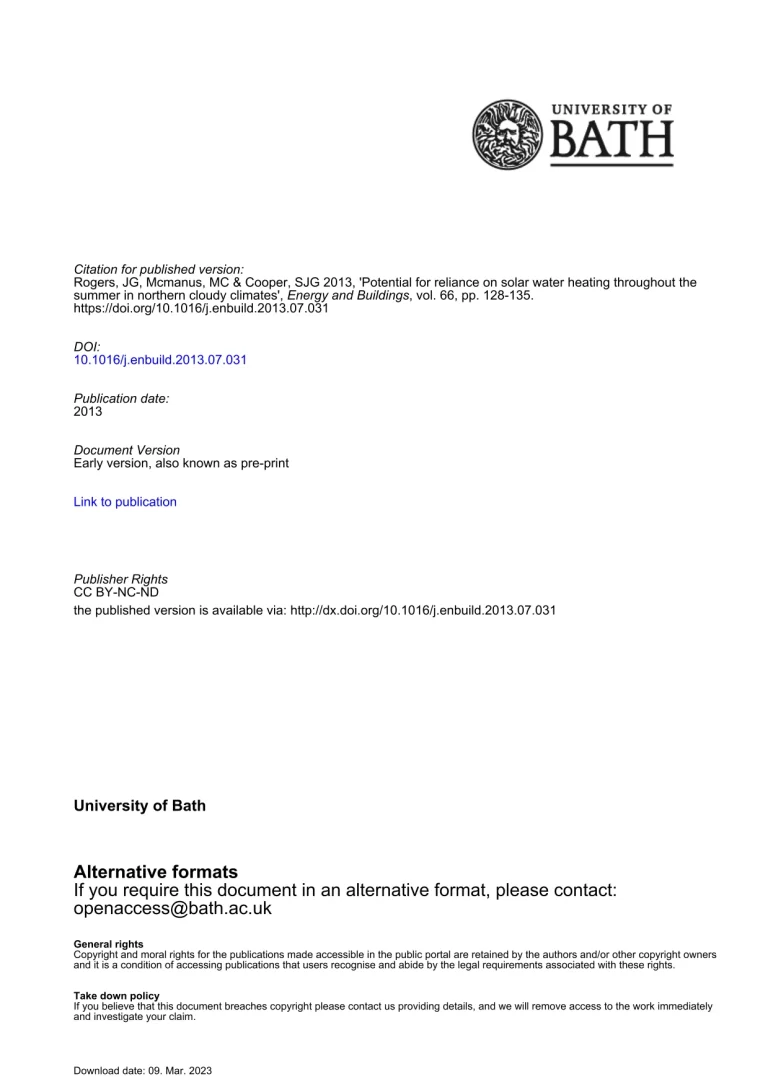 Potential For Reliance On Solar Water Heating Throughout The Summer In Northern Cloudy Climates 37 16 View details Download