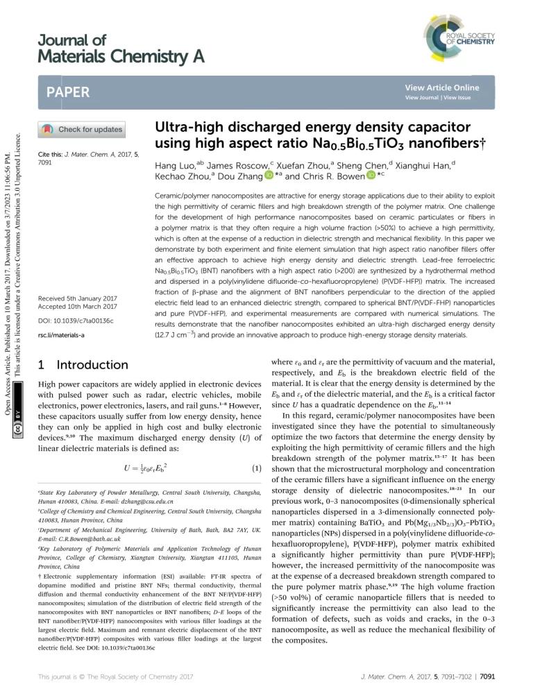Ultra-High Discharged Energy Density Capacitor Using High Aspect Ratio Na0.5Bi0.5tio3 Nanofibers 29 26 View details Download
