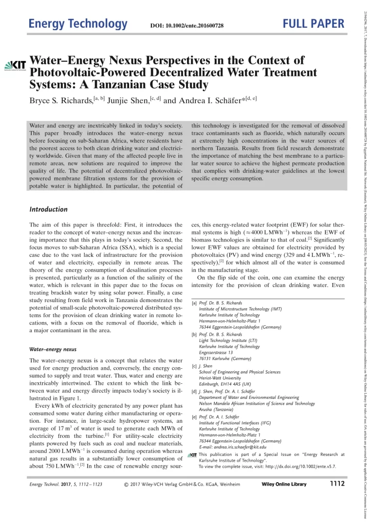 Water–Energy Nexus Perspectives In The Context Of Photovoltaic-Powered Decentralized Water Treatment Systems A Tanzanian Case Study 33 13 View details Download