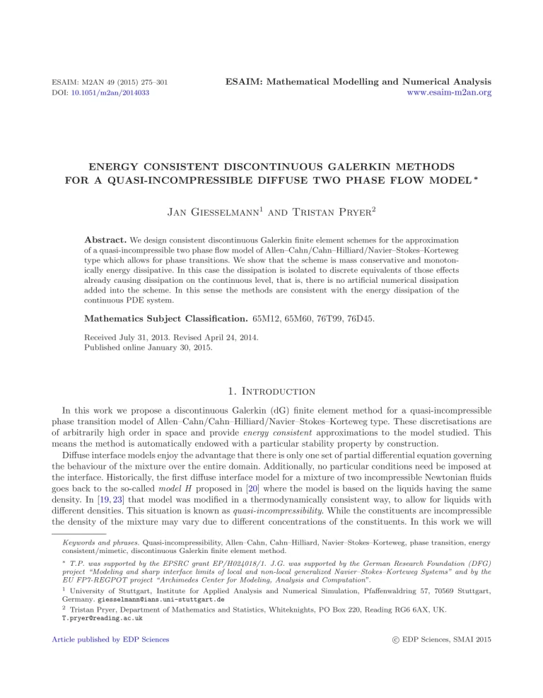 Energy Consistent Discontinuous Galerkin Methods For A Quasi-Incompressible Diffuse Two Phase Flow Model 34 27 View details Download