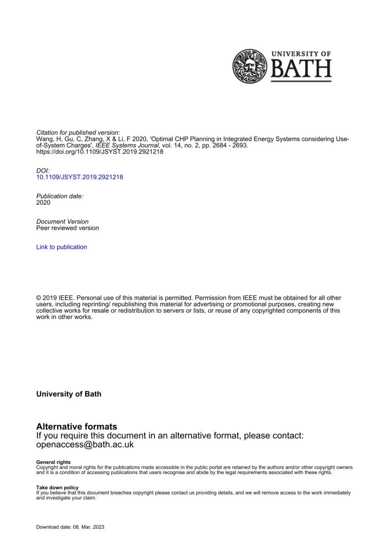 Optimal CHP Planning In Integrated Energy Systems Considering Network Charges 44 43 View details Download