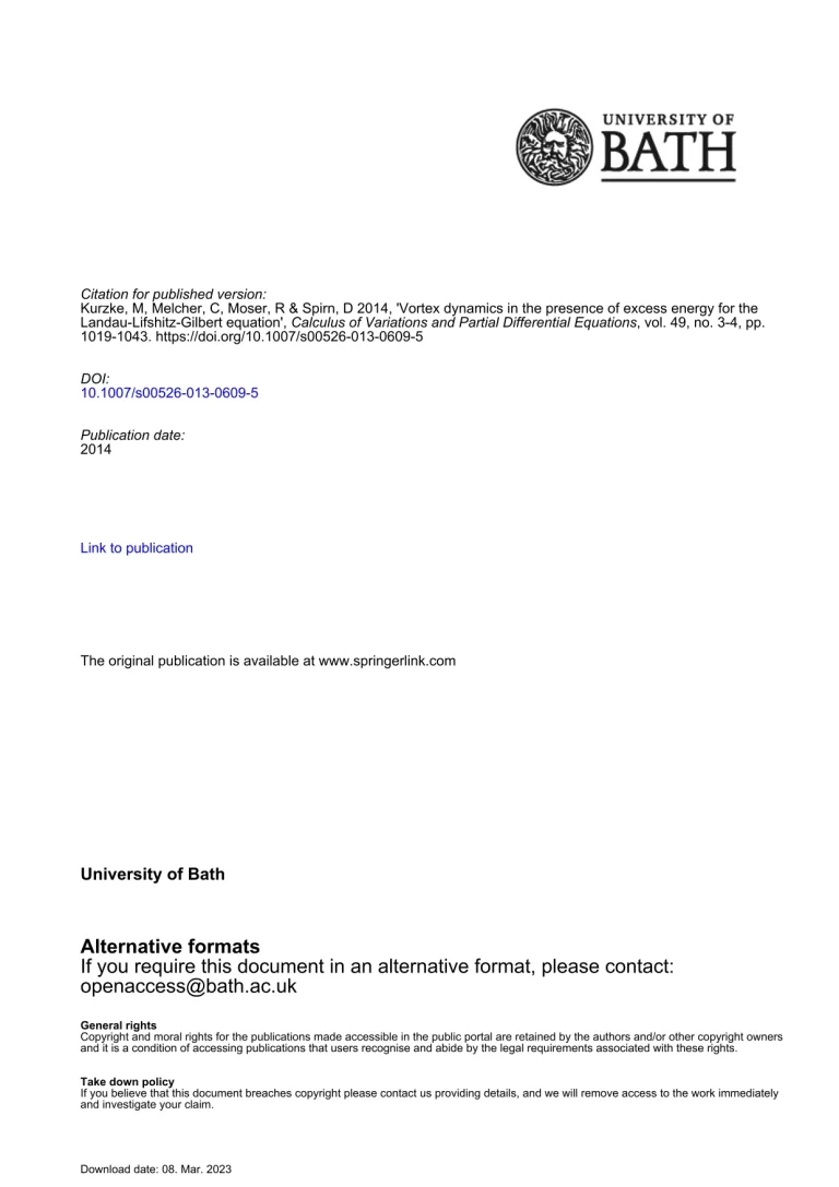 Vortex Dynamics In The Presence Of Excess Energy For The Landau-Lifshitz-Gilbert Equation 35 40 View details Download