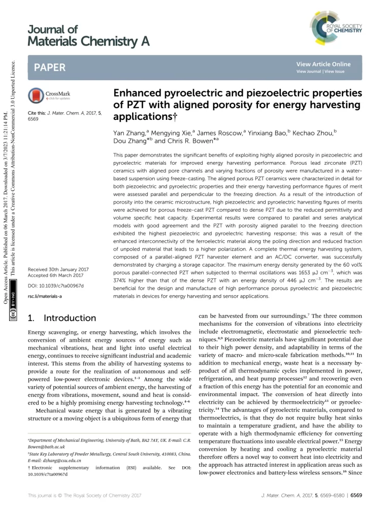Enhanced Pyroelectric And Piezoelectric Properties Of PZT With Aligned Porosity For Energy Harvesting Applications 36 25 View details Download