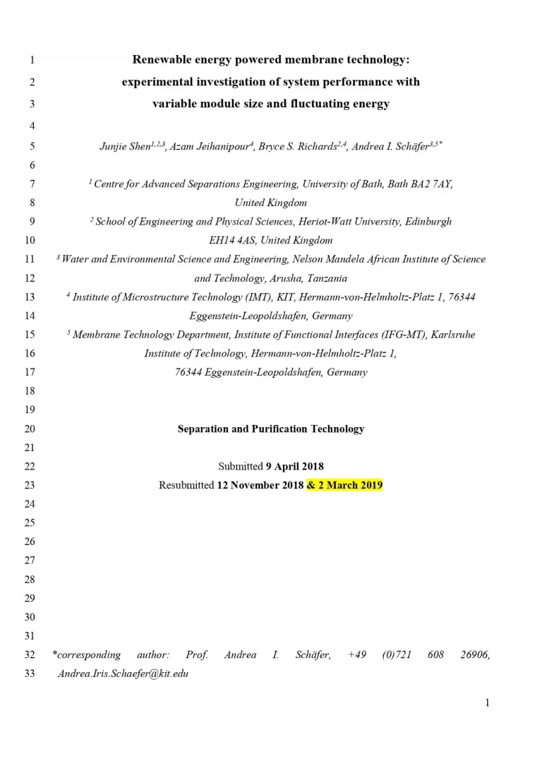 Renewable Energy Powered Membrane Technology: Experimental Investigation of System Performance with Variable Module Size and Fluctuating Energy 35 25 View details Download
