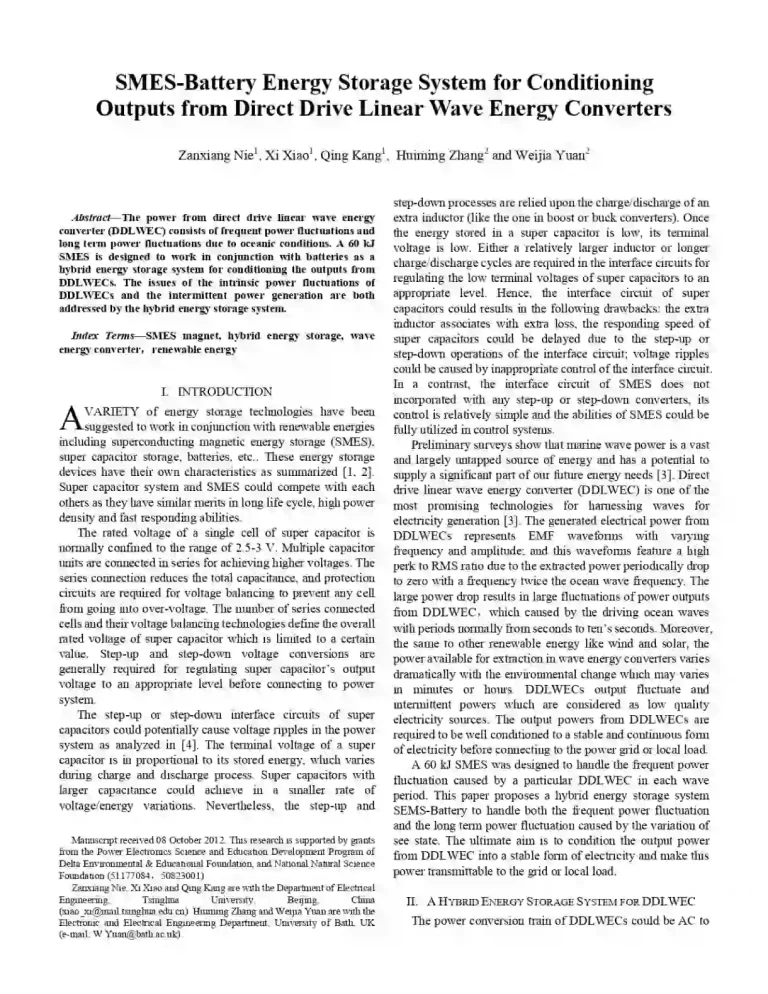SMES-Battery Energy Storage System for Conditioning Outputs from Direct Drive Linear Wave Energy Converters 35 42 View details Download