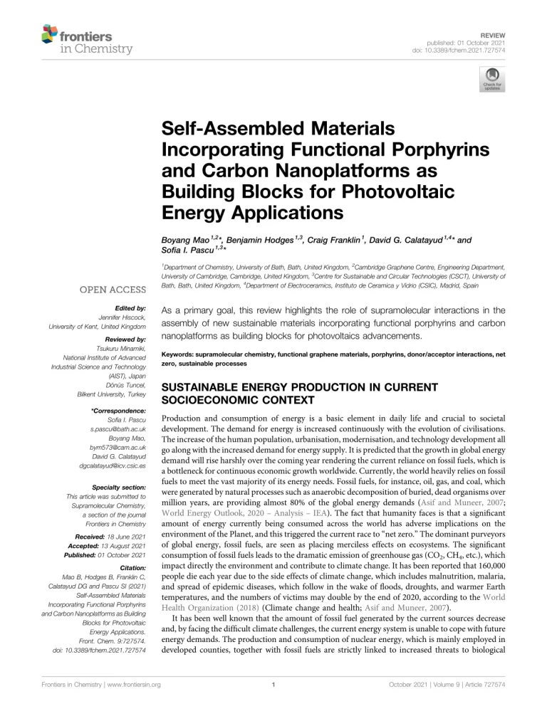 Self-Assembled Materials Incorporating Functional Porphyrins And Carbon Nanoplatforms As Building Blocks For Photovoltaic Energy Applications 39 18 View details Download