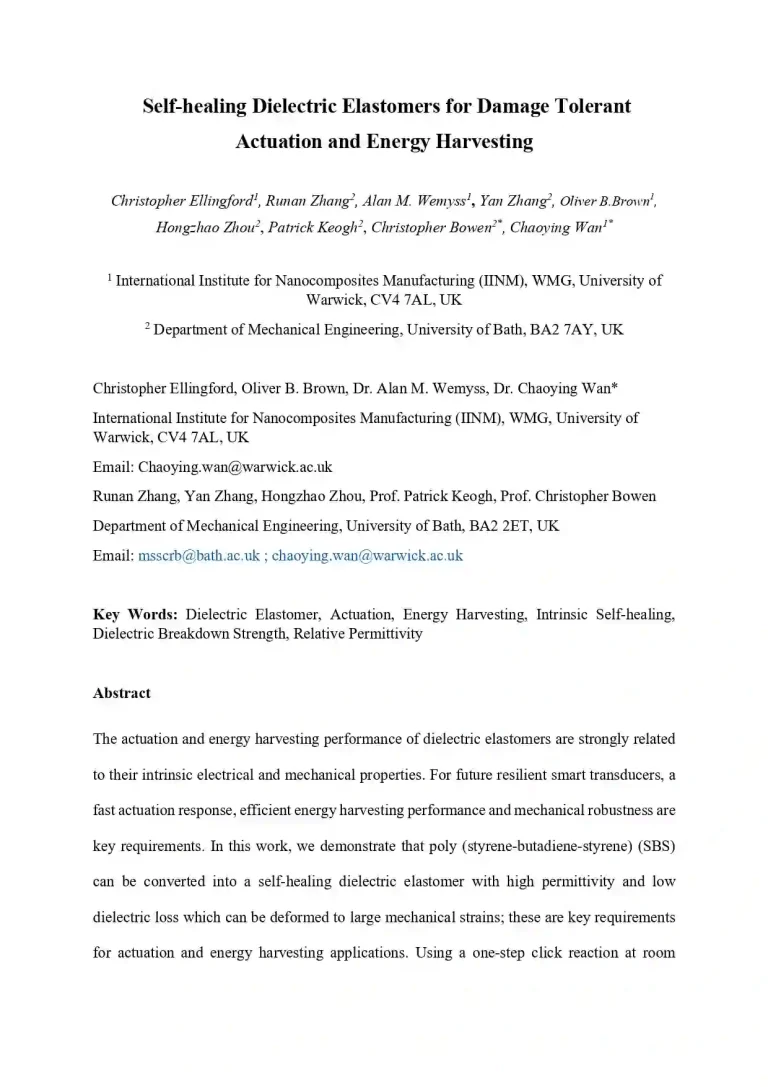 Self-healing Dielectric Elastomers for Damage Tolerant Actuation and Energy Harvesting 28 23 View details Download
