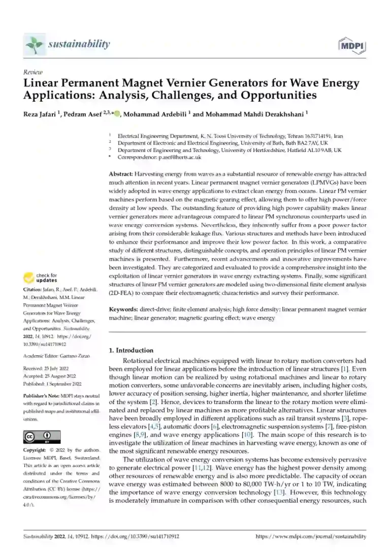 Linear Permanent Magnet Vernier Generators for Wave EnergyApplications: Analysis, Challenges, and Opportunities 37 24 View details Download