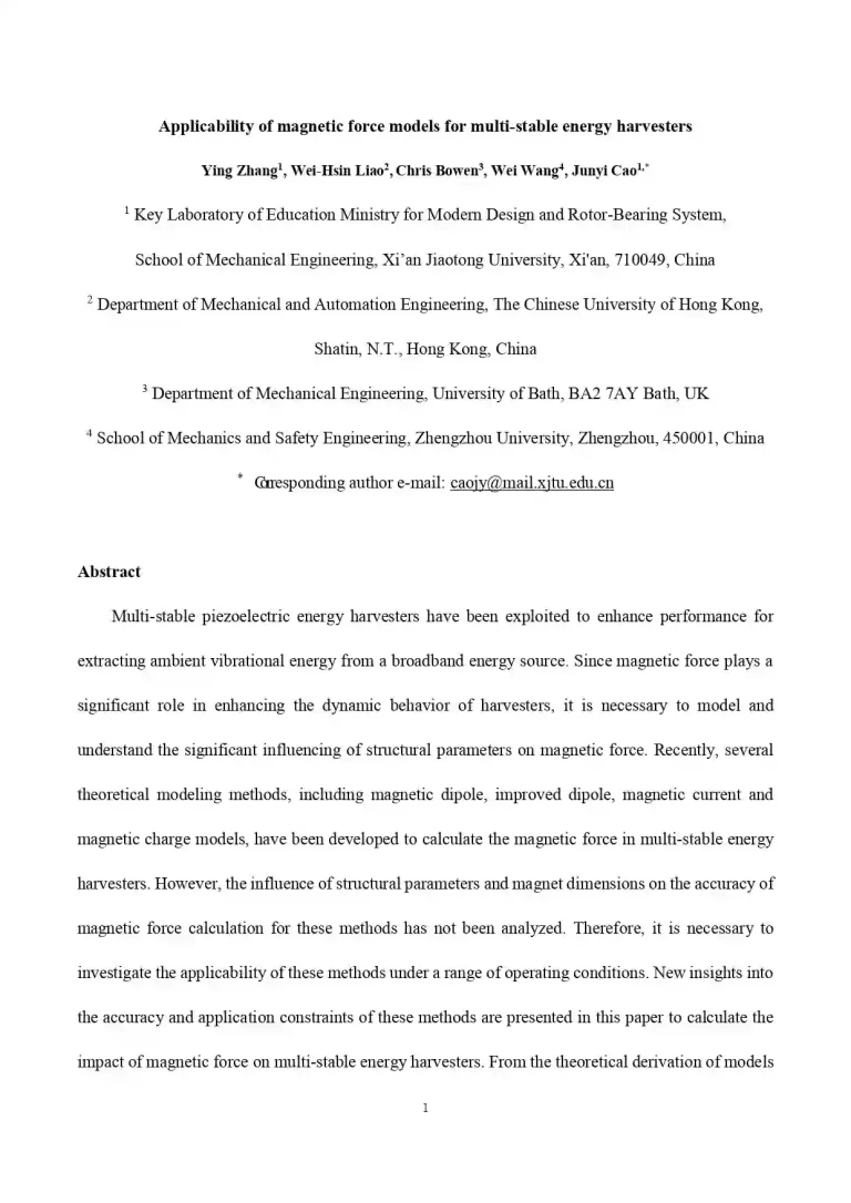 Applicability of Magnetic Force Models for Multi-Stable Energy Harvesters 33 13 View details Download