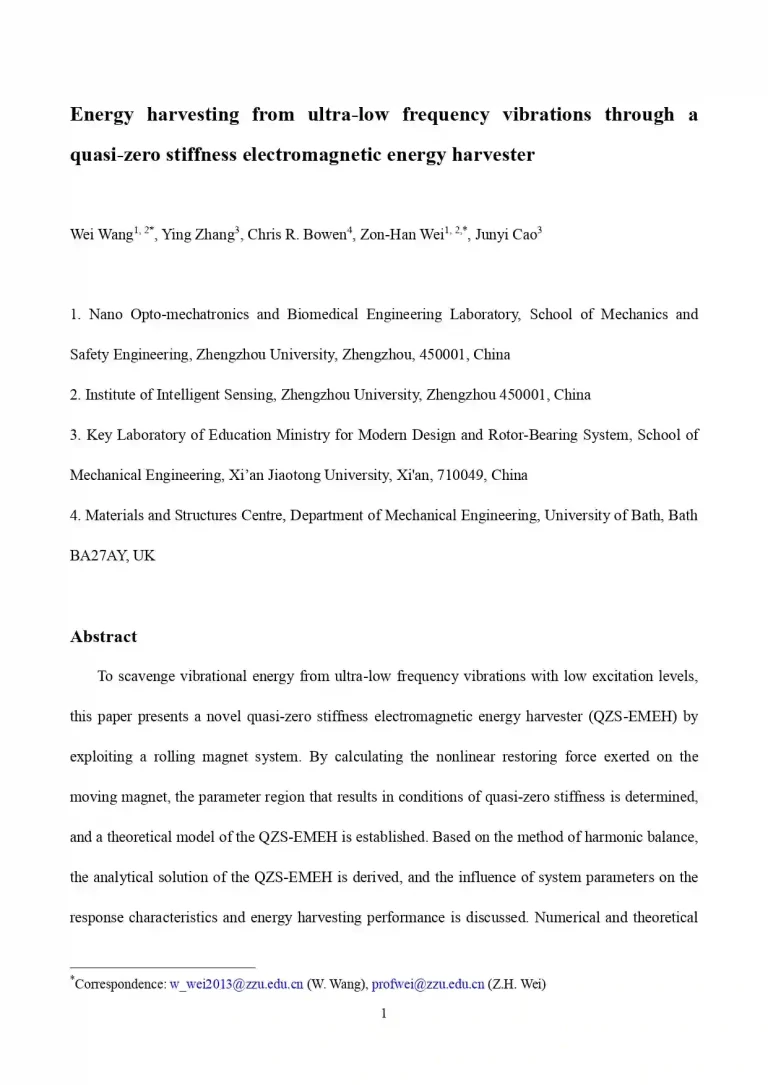 Energy Harvesting from Ultra-Low Frequency Vibrations through a Quasi-Zero Stiffness Electromagnetic Energy Harvester 36 23 View details Download