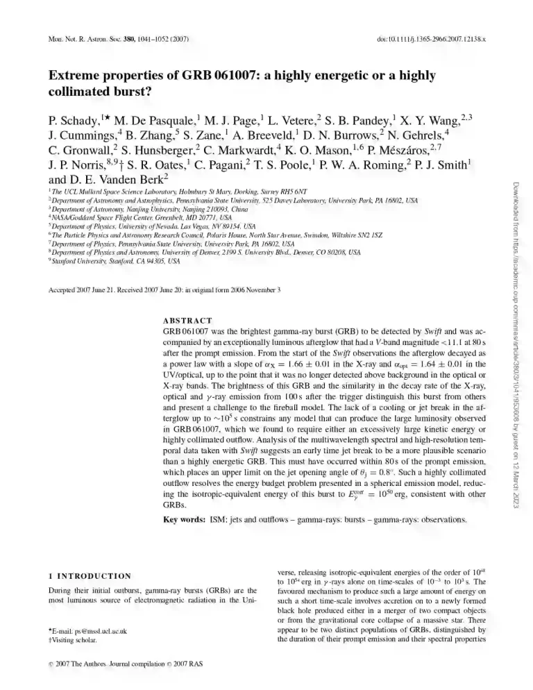 Extreme properties of GRB 061007: a highly energetic or a highly collimated burst 36 13 View details Download