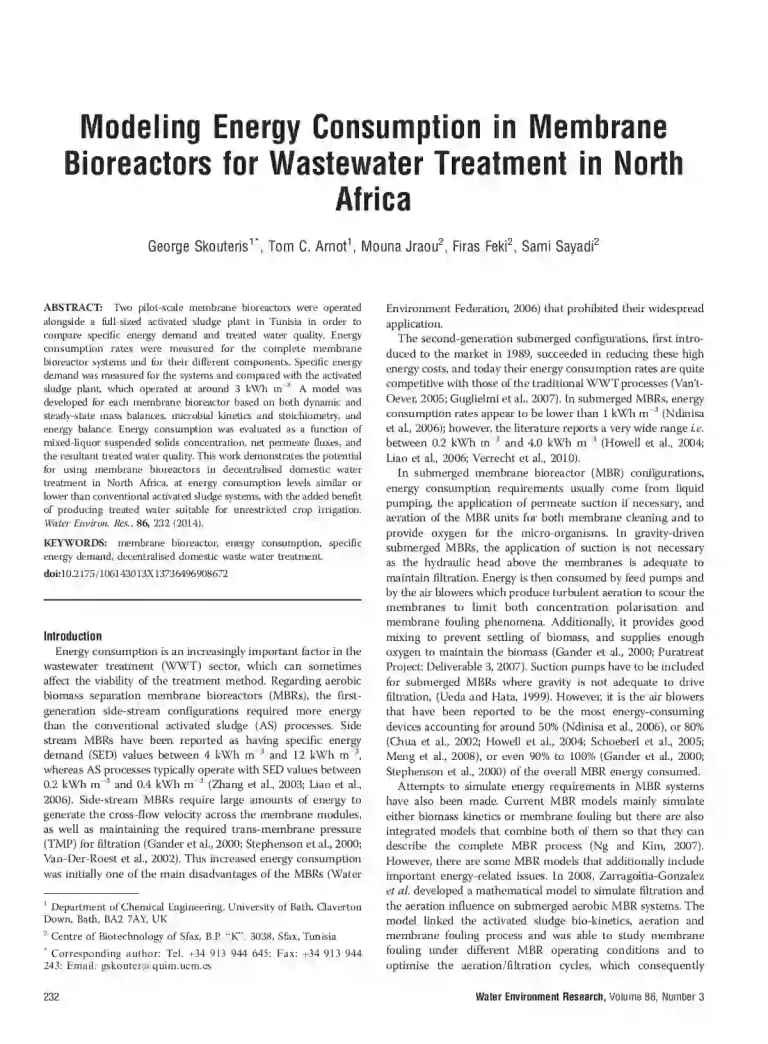 Modeling Energy Consumption in Membrane Bioreactors for Wastewater Treatment in North Africa 35 114 View details Download
