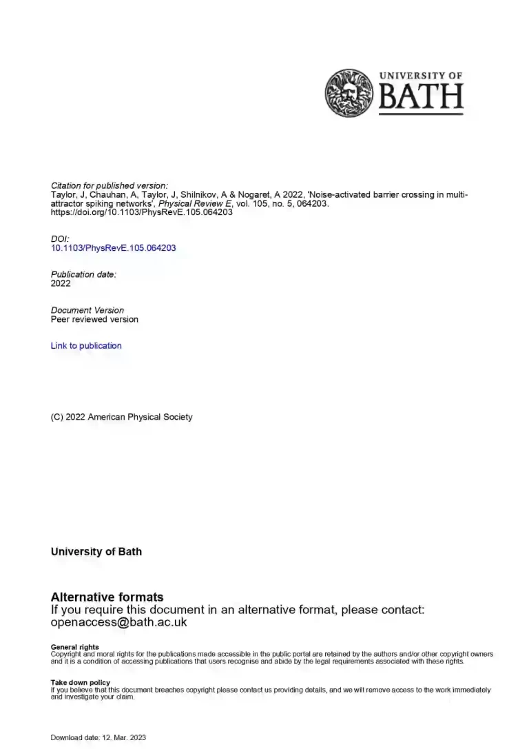Noise-activated barrier crossing in multi-attractor dissipative neural networks 31 21 View details Download
