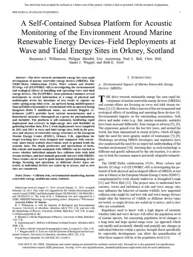 Self-Contained Subsea Platform for Acoustic Monitoring of the Environment Around Marine Renewable Energy Devices–Field Deployments at Wave and Tidal Energy Sites in Orkney, Scotland 36 29 View details Download