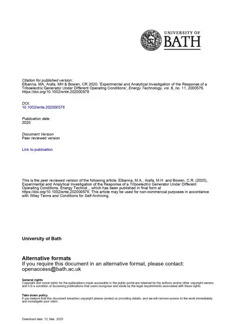 Experimental and Analytical Investigation of the Response of a Triboelectric Generator under Different Operating Conditions 34 34 View details Download