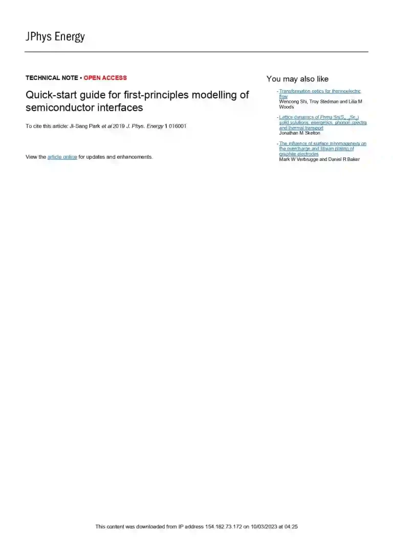 Quick-start Guide for First-principles Modelling of Semiconductor Interfaces 35 12 View details Download