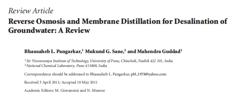 Reverse Osmosis And Membrane Distillation For Desalination Of Groundwater: A Review 4 2 View details Download