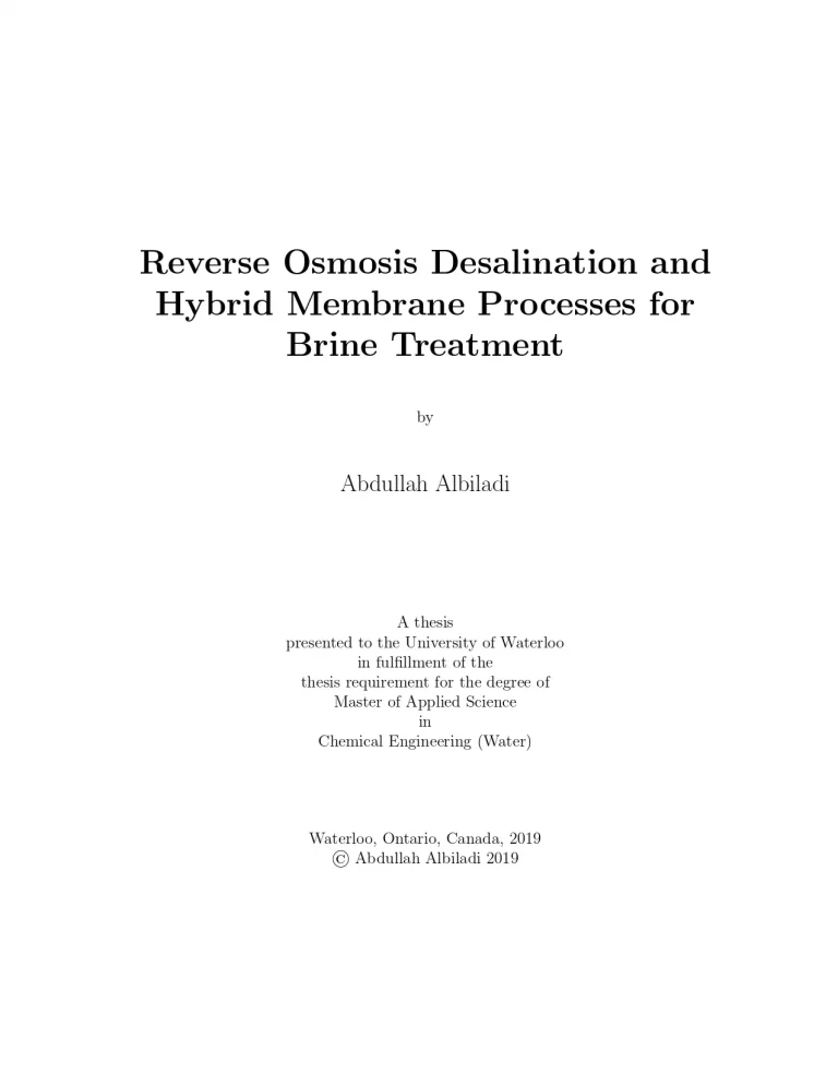 Reverse Osmosis Desalination And Hybrid Membrane Processes For Brine Treatment 4 2 View details Download