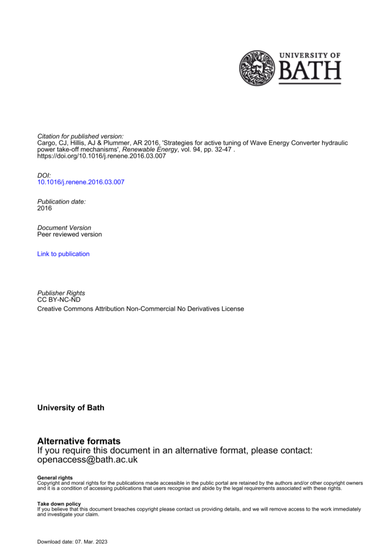 Strategies For Active Tuning Of Wave Energy Converter Hydraulic Power Take-Off Mechanisms 35 58 View details Download