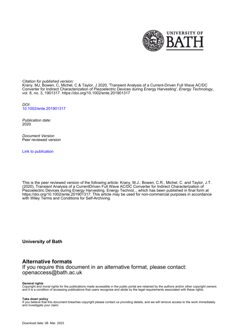 Transient Analysis Of A Current Driven Full Wave ACDC Converter For Indirect Characterisation Of Piezoelectric Devices During Energy Harvesting 38 18 View details Download