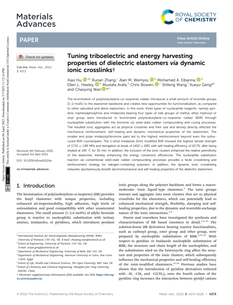 Tuning Triboelectric And Energy Harvesting Properties Of Dielectric Elastomers Via Dynamic Ionic Crosslinks 34 19 View details Download
