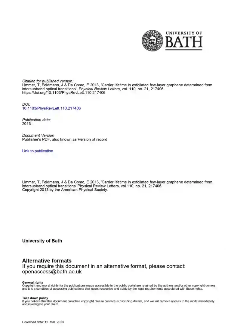 Carrier Lifetime in Exfoliated Few-Layer Graphene Determined from Intersubband Optical Transitions 30 32 View details Download