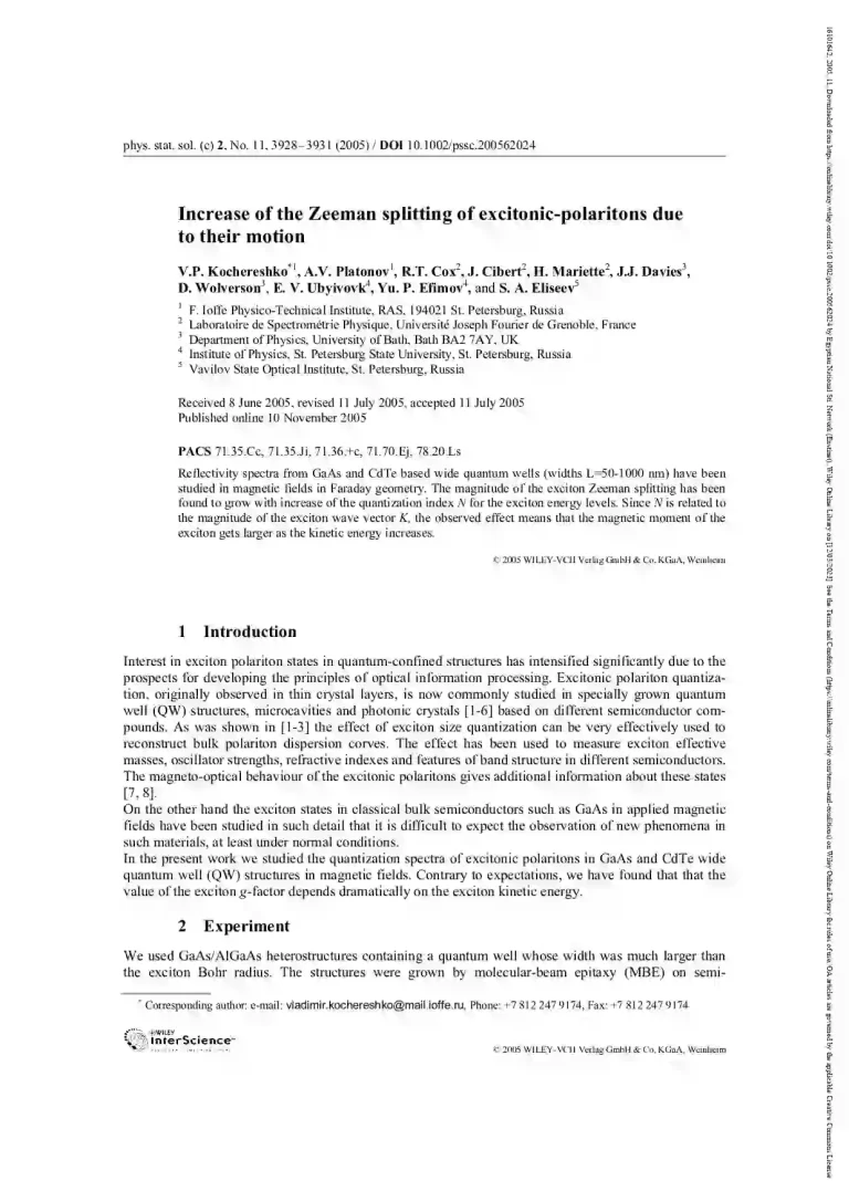 Increase of the Zeeman Splitting of Excitonic-polaritons due to their Motion 38 13 View details Download
