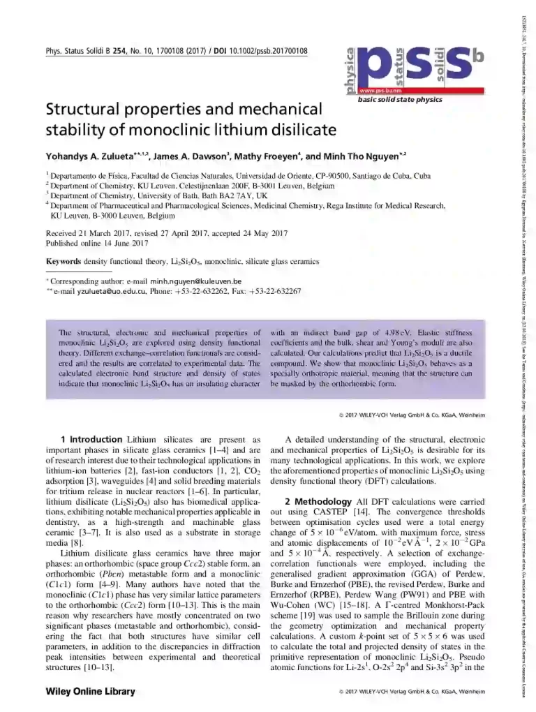 Structural properties and mechanical stability of monoclinic lithium disilicate 42 30 View details Download