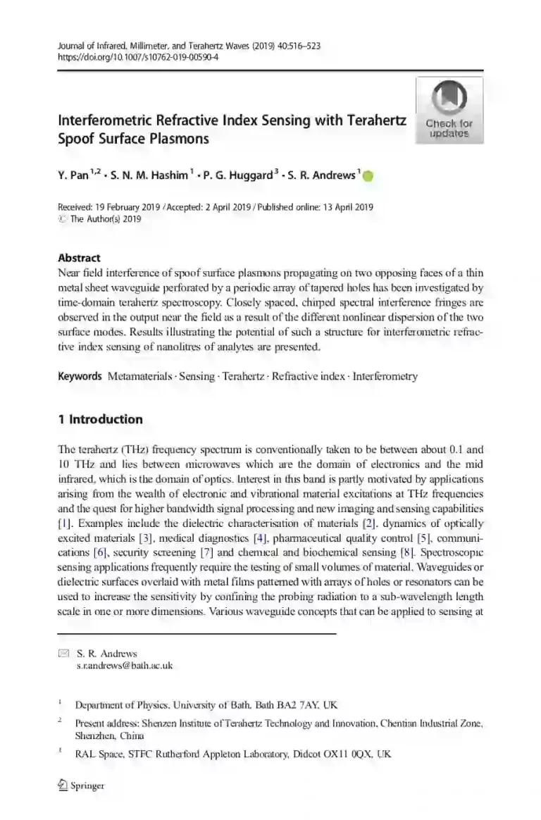 Interferometric Refractive Index Sensing with Terahertz Spoof Surface Plasmons 40 27 View details Download