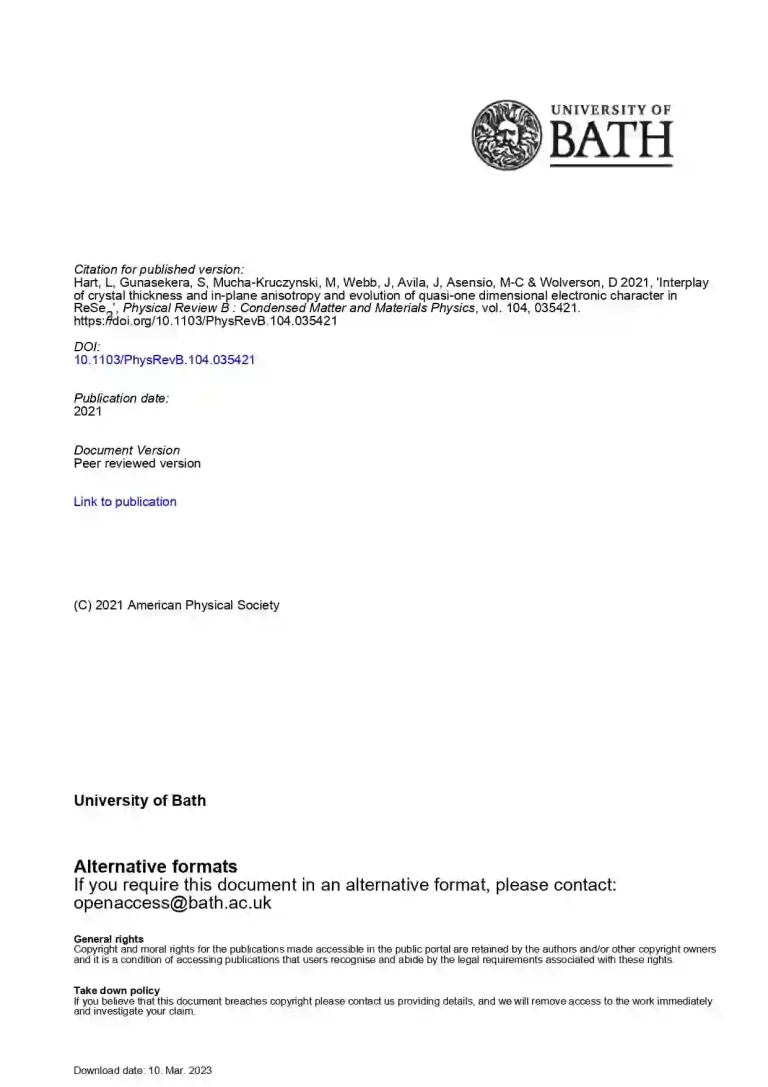 Interplay of crystal thickness and in-plane anisotropy and evolution of quasi-one dimensional electronic character in ReSe2 40 26 View details Download