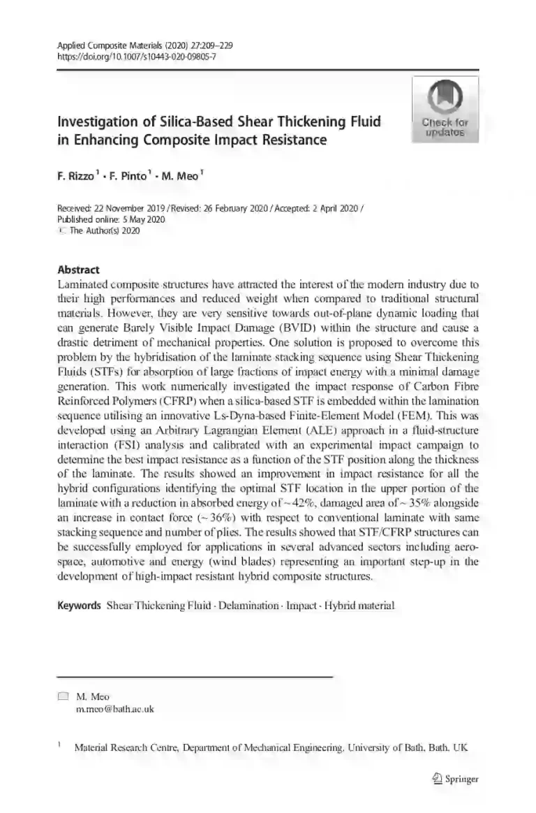 Investigation of Silica-Based Shear Thickening Fluid in Enhancing Composite Impact Resistance 38 11 View details Download