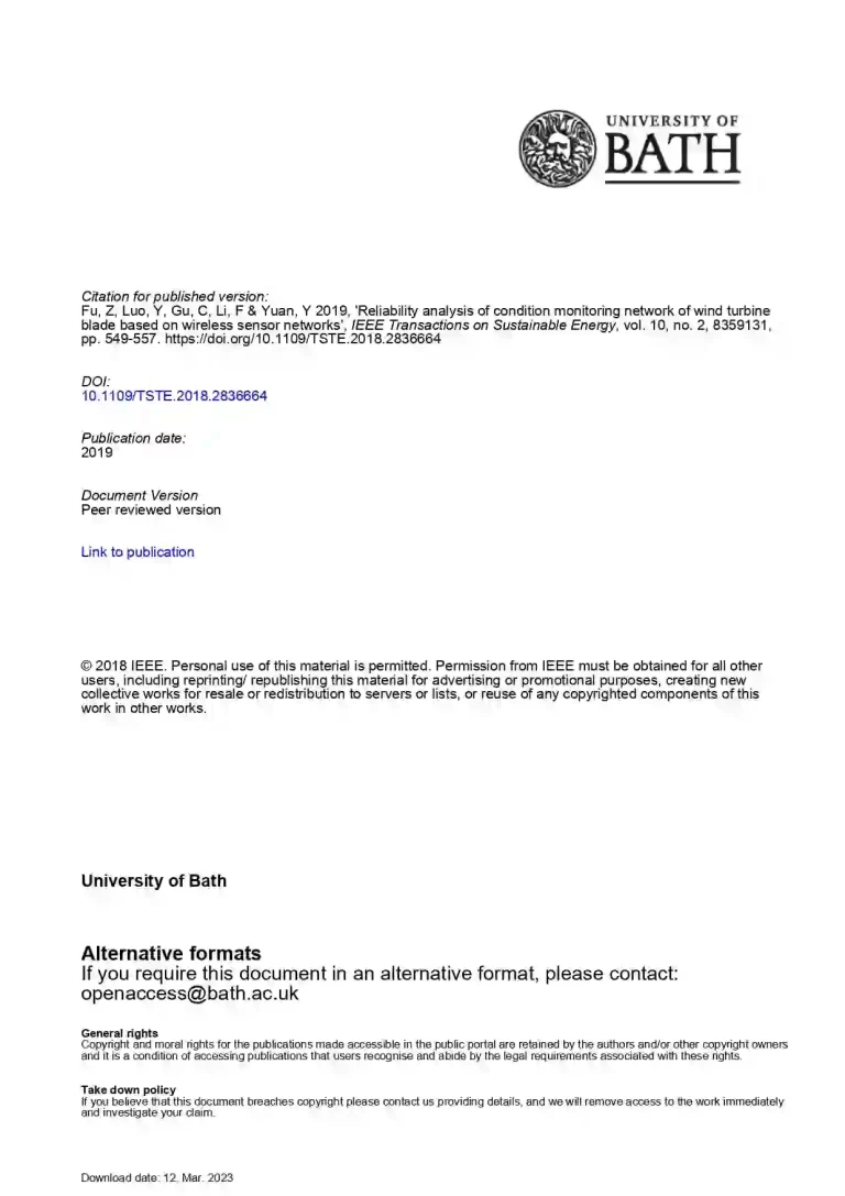 Reliability Analysis of Condition Monitoring Network of Wind Turbine Blade Based on Wireless Sensor Networks 38 20 View details Download