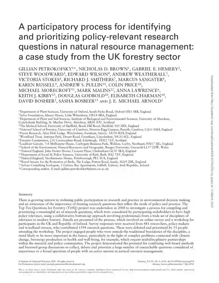 A Participatory Process for Identifying and Prioritizing Policy-Relevant Research Questions in Natural Resource Management: a Case Study from the UK Forestry Sector 37 30 View details Download