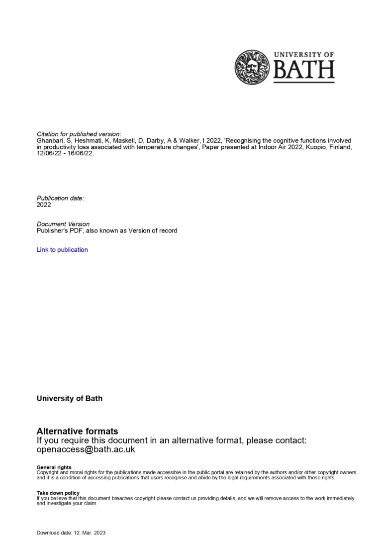 Recognising the Cognitive Functions Involved in Productivity Loss Associated with Temperature Changes 31 39 View details Download