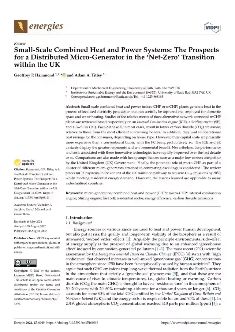Small-Scale Combined Heat and Power Systems: The Prospects for a Distributed Micro-Generator in the ‘Net-Zero’ Transition within the UK 32 33 View details Download