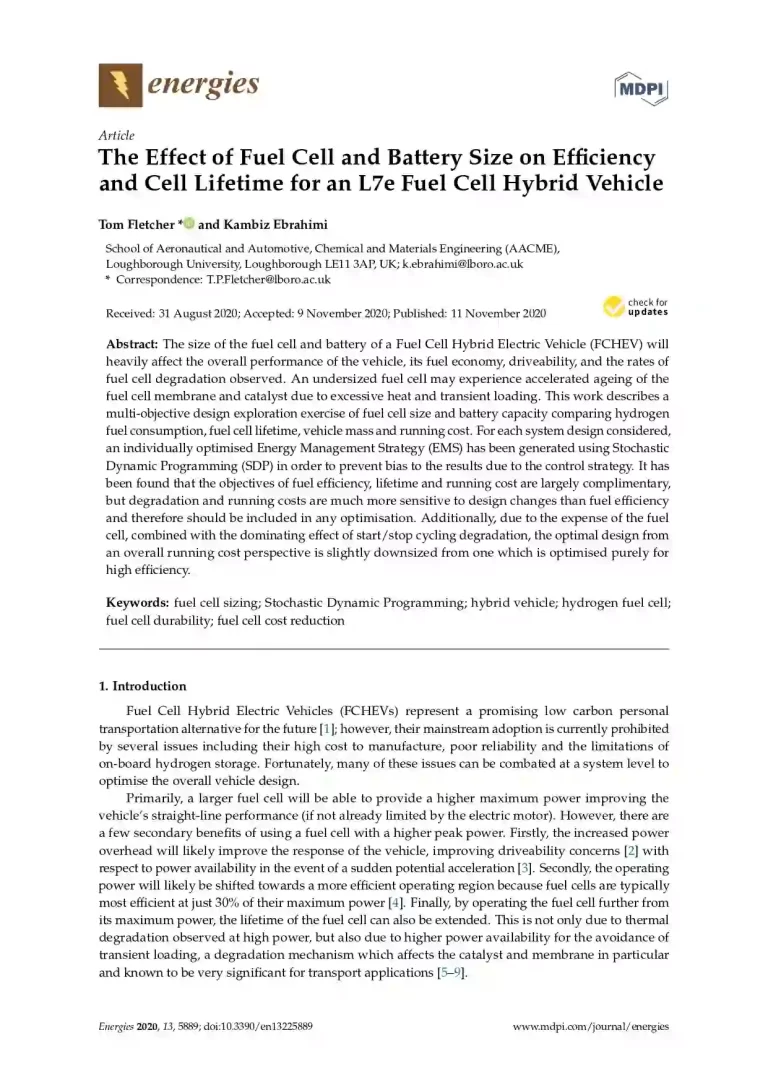 The Effect of Fuel Cell and Battery Size on Efficiency and Cell Lifetime for an L7e Fuel Cell Hybrid Vehicle 34 10 View details Download