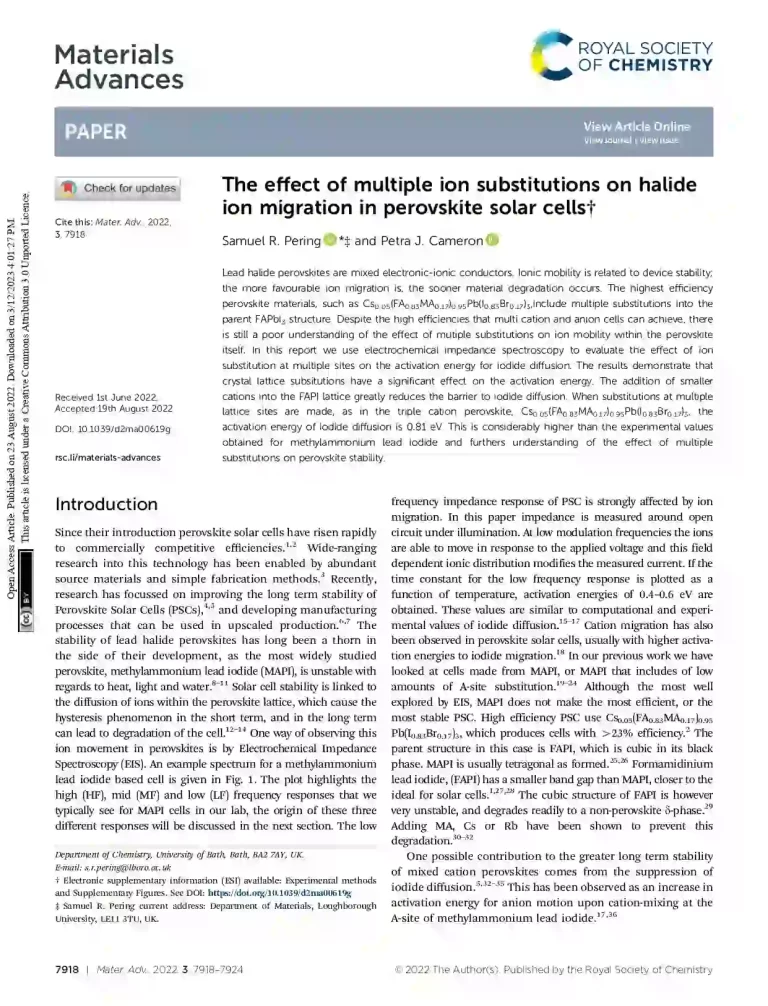 The Effect of Multiple Ion Substitutions on Halide Ion Migration in Perovskite Solar Cells 37 28 View details Download