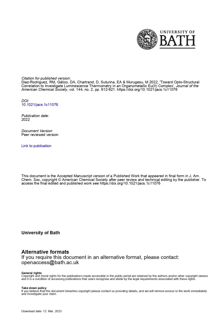 Towards Opto-Structural Correlation to Investigate Luminescence Thermometry in an Organometallic Eu(Ii) Complex 31 28 View details Download