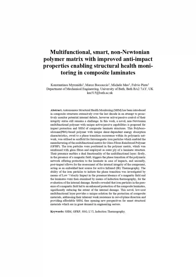 Multifunctional, Smart, Non-Newtonian Polymer Matrix with Improved Anti-Impact Properties Enabling Structural Health Monitoring in Composite Laminates 31 16 View details Download