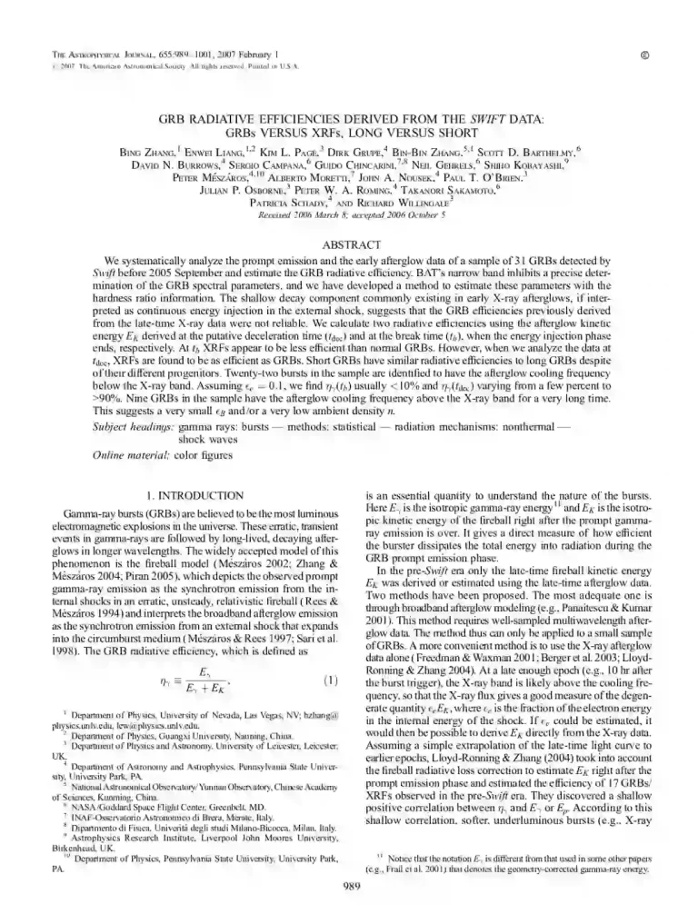 GRB Radiative Efficiencies Derived from the Swift Data: GRBs versus XRFs, Long versus Short 37 27 View details Download