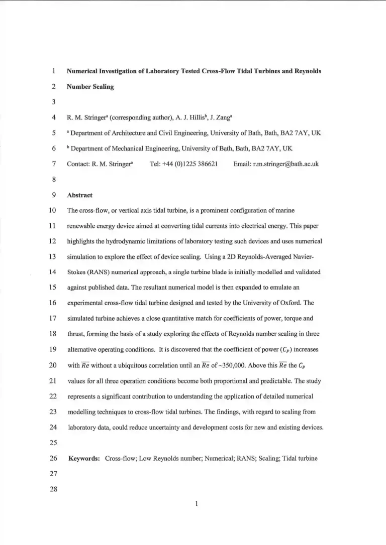 Numerical Investigation of Laboratory Tested Cross-Flow Tidal Turbines and Reynolds Number Scaling 40 17 View details Download