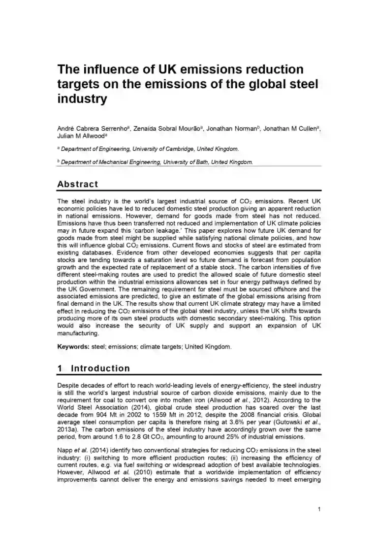 The Influence of UK Emissions Reduction Targets on the Emissions of the Global Steel Industry 45 34 View details Download