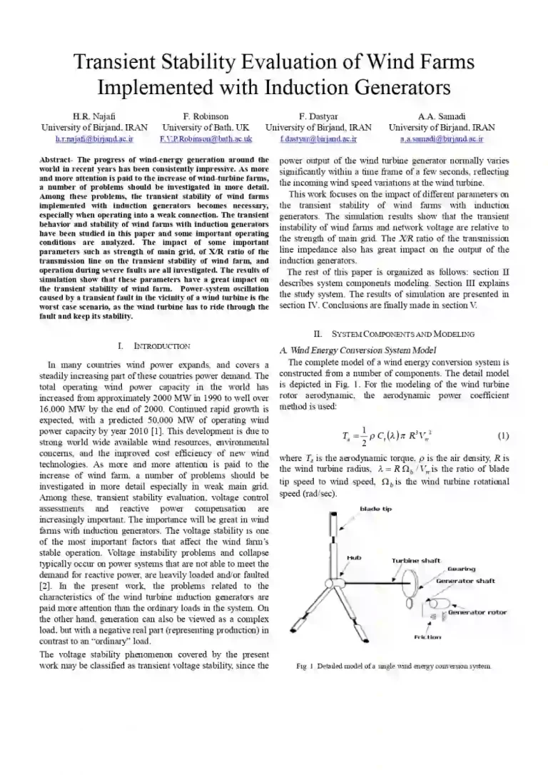Transient Stability Evaluation of Wind Farms Implemented with Induction Generators 35 13 View details Download
