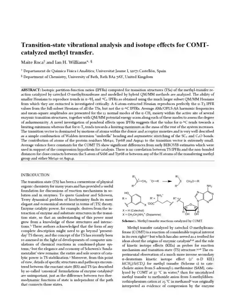 Transition-State Vibrational Analysis and Isotope Effects for COMT-Catalyzed Methyl Transfer 42 19 View details Download